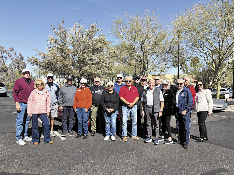 February 19 found members of the Corvette Club participating in a dine and drive adventure in beautiful Fountain Hills. After beginning our trip from Tuscany Falls and successfully navigating the I-10 without incident, we arrived at Phil’s Filling Station. At Phil’s we sampled scrumptious burgers, salads, and patty melts. We also took a few minutes to swap stories and celebrate a member’s birthday. If you live in PebbleCreek and own a Corvette, you are eligible to join our club. For details, contact membership chairman Terry Worwa at 214-715-7126.