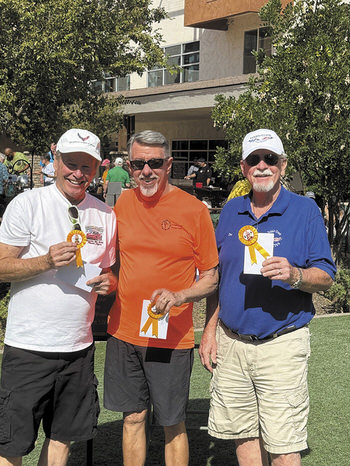 Winning Corvette owners, from right to left, First place: Don Hamilton, Second place: Dennis Whitley, Third place: Skip Gault (photo by Stephen Banet)