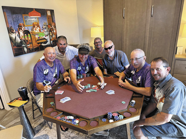 The Hurwitz, Stanek, Funkhouser Poker Group meets every Wednesday from 1 to 4 p.m. for some lively, sometimes stressful, sometimes profitable poker action. Dealer’s Choice games range from “Jacks or Better” to “Elevator Overload, Middle Card Wild.”