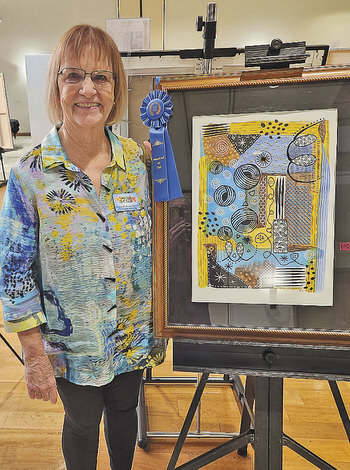 Diana Horton-Smith pictured with her “Embroidered Whimsy” painting