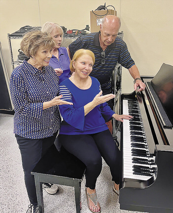 Director Carole Palmer, Music Director Vocals Katie Croy, Assistant Director Sharon Graville, and Music Director Tech Steve Jensen working on some of the music for ShowTime’s fall production, “Irving Berlin’s White Christmas.”