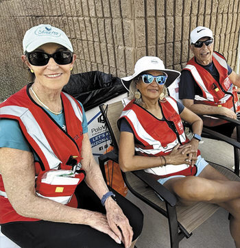 Team lead Pat Chernow, left, with PebbleCreek Pickleball Medical Team members Teresita Laron and Steve Jensen (photo by Kathy Aalto)