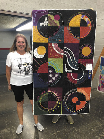 Over the last several years, Carole Schumacher has entered quilts in shows locally and nationally, receiving many awards. She says, “I’m motivated to enter competitions to make me better at my artwork. I value feedback from judges, both positive and constructive criticism.” She loves sharing her work with others, and telling the story of how the pieces came to be. Noting that winning her first blue ribbons was “probably the coolest thing ever for me,” she says she will continue to submit to national and international shows. Her piece The Circle of Life was awarded a Blue Ribbon First Place in the Creative Stitchery, Original Design category at the 2021 Arizona State Fair.