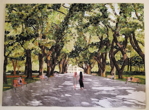 Karen McCarty has entered her pieces in shows in several states. In 2017, she submitted her quilt, Plaza San Martin, which had won Viewers’ Choice at the San Diego Quilt Show Challenge in 2016, into Road to California, one of the largest national shows. She won in the Landscape division earning a $1,000 prize. “I was jumping up and down with joy when I got the check!” Karen says.