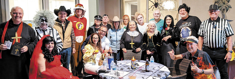 On Oct. 31, a cauldron of frightful-looking friends and creatures crept, slithered, and shambled into the haunted mansion of Ron and Debbie Baron for a spooktacular Unit 44 Halloween Party. The eerie evening doubled as a wicked welcome for our newest neighbors, Ron and Gayle Lopez, who bravely joined the neighborhood’s coven. The guest list, which at times made Ron and Gayle doubt their choice, read like a who’s-who from a haunted Hollywood: the creepy Addams Family, Beetlejuice (who had no problem saying his name three times, as well as saying everything three times), Gilligan and Mary Ann shipwrecked from their island, The Big Lebowski, a sports referee calling fouls on rogue ghouls, a stunningly beautiful Wicked Witch, clergy members who took a break from an exorcism to bless the ‘punch,’ a biker dude and his chick revving up the crowd, the Buc-ee’s mascot (because even beavers get spooky), queens ruling the night, and zombie doctors who groaned from the painful needles stuck in their skulls.
