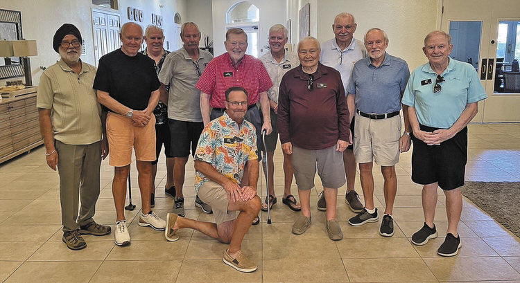 A sincere welcome to Bill Many who joins Unit 54 in PebbleCreek. Our October men’s breakfast group consisted of (from left): standing is Rajendra Sudan, Bill Many, Claire Martin, Steve Domholt, Jack Klepinger, Harold Rathman, Bill Gray, Fred Biancardi, Peter Chimicles, Jack Fink, and kneeling is Mike Strong.